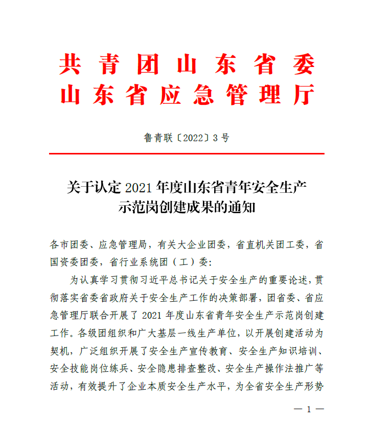 1月5日,“2021年度山東省青年安全生產(chǎn)示范崗”評選結果揭曉,水發(fā)能源集團旗下沂南力諾太陽能電力工程有限公司榮獲“山東省青年安全生產(chǎn)示范崗”榮譽稱號。