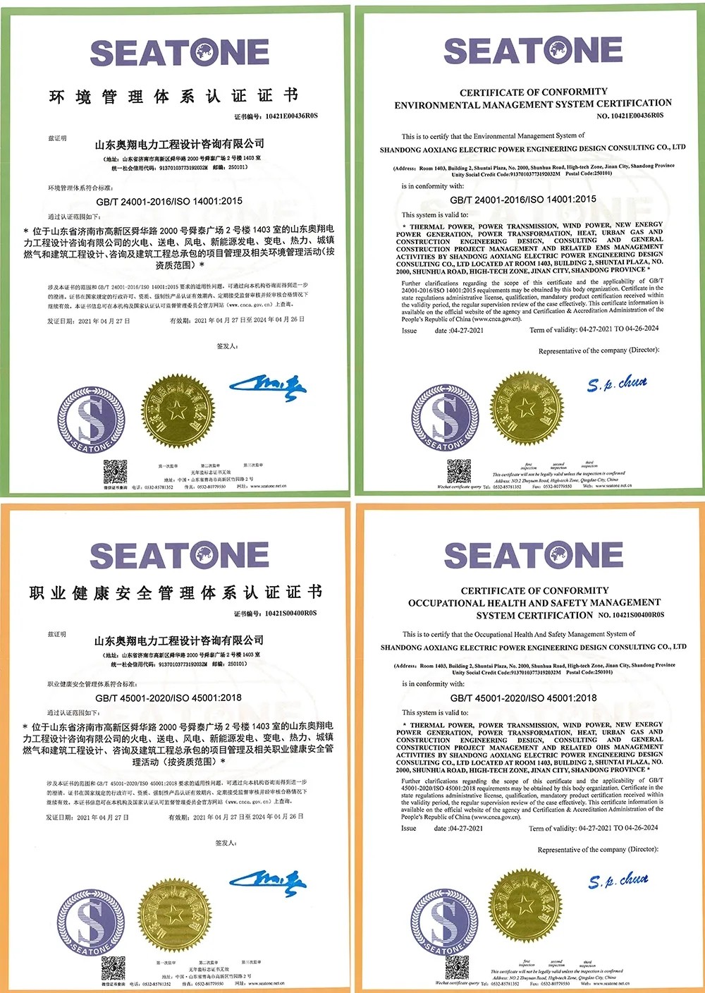 山東奧翔順利通過兩個ISO管理體系認(rèn)證