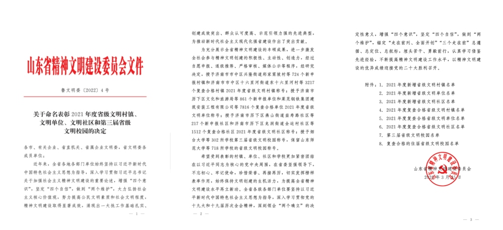 3月15日,山東省精神文明建設(shè)委員會(huì)印發(fā)《關(guān)于命名表彰2021年度省級(jí)文明村鎮(zhèn)、文明單位、文明社區(qū)和第三屆省級(jí)文明校園的決定》,水發(fā)能源集團(tuán)被正式授予省級(jí)文明單位榮譽(yù)稱(chēng)號(hào)。 ?
